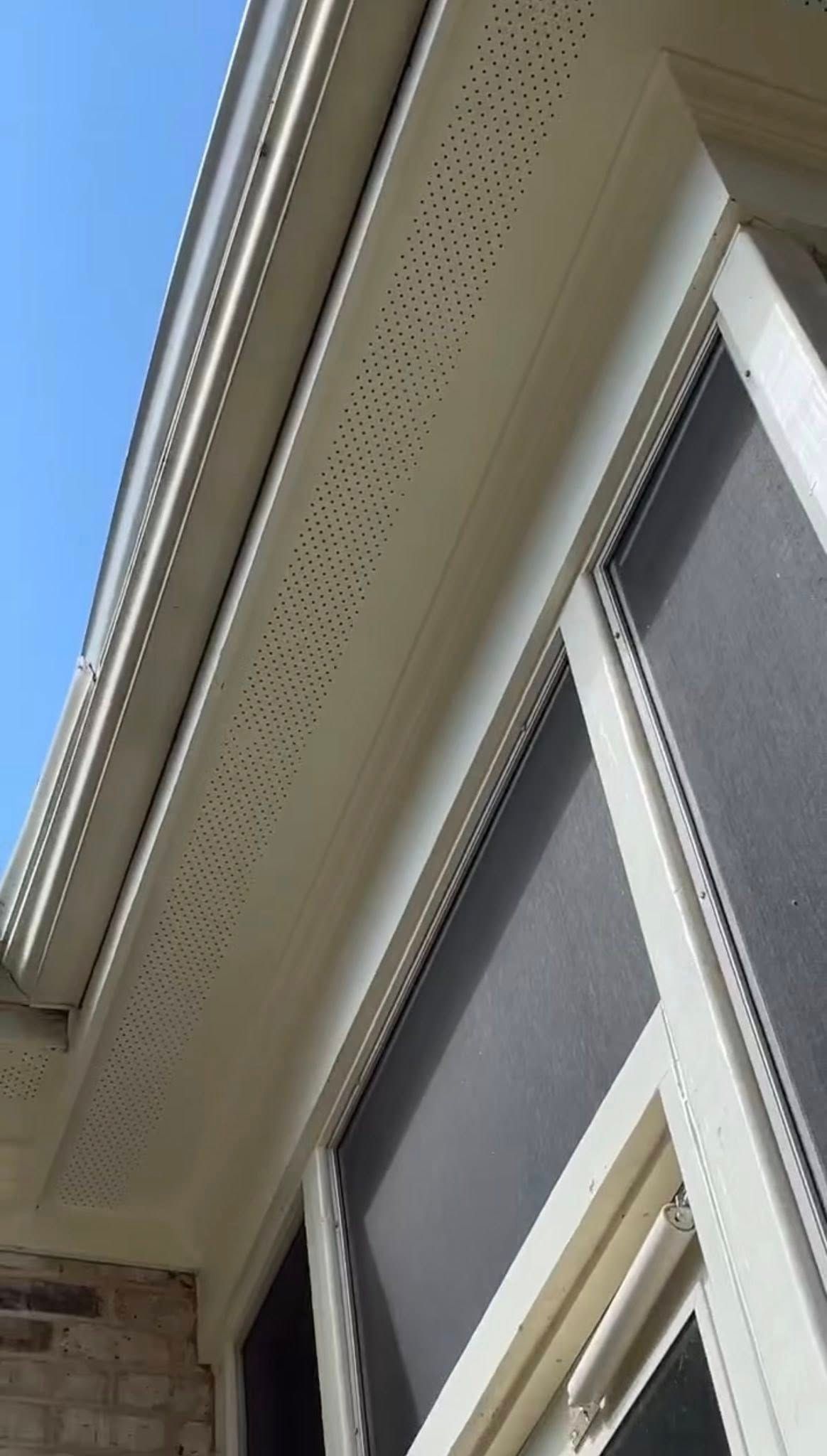 Seamless gutters eliminate the joint failures common in sectional systems and route water away from foundation walls and landscaping. Soffit and fascia work together to ventilate the attic and protect rafter tails from moisture exposure. When fascia boards rot, they lose the ability to support gutter hangers securely. When soffit panels crack or pull away, attic humidity rises and insulation performance drops.